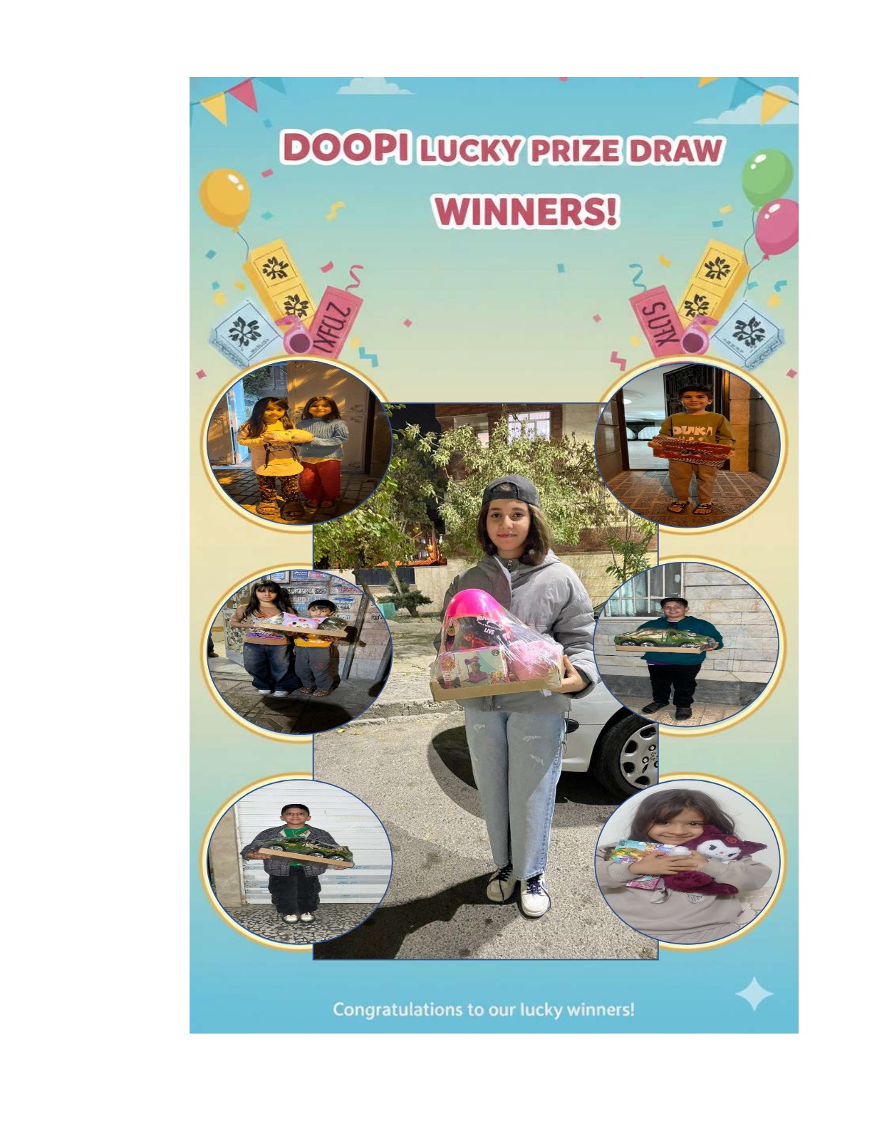 در این صفحه میتوانید اسامی برندگان قرعهکشیهای دورهای Doopi Lucky را مشاهده کنید. هر قرعهکشی با هدف ایجاد تجربهای شاد، شفاف و قابل اعتماد برای خانوادهها برگزار شده و نتایج آن بهصورت رسمی اعلام میشود. اگر در قرعهکشی شرکت کردهاید، با وارد کردن شماره سفارش خود، وضعیت برنده شدن را بررسی کنید. همچنین میتوانید تاریخچه قرعهکشیها و جوایز هر دوره را ببینید.